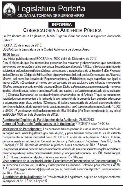 La Junta Directiva de la Institución, con sede en el barrio de Recoleta, convoca a una Asamblea Extraordinaria para el día jueves 21 de marzo de 2013 a las 14 horas, en la sede social, José Andrés Pacheco de Melo 1820 (ver nota)