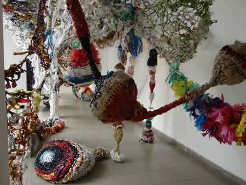 En el Centro Cultural Recoleta puede visitarse esta muestra, creada con bolsas plásticas. Uno de los objetivos es hacer pensar y reflexionar acerca del consumismo y luego del mismo, como se convierte la materia, lo que ya consumimos y luego tiramos, y aunque no lo vemos, sigue estando (ver nota)
