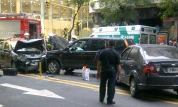 Ayer en horas del mediodía un taxista violó la luz roja de un semáforo, atropelló a un motociclista, y, según testigos, intentó escapar de contramano por Avenida Santa Fe y al cruzar el segundo semáforo en rojo embistió a dos taxis, provocando la muerte de una chica de 22 años y cinco heridos (ver nota)
