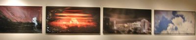 Al ingresar a la sala, el espectador encontrará una gran fotografía en blanco y negro de los tres artistas en uno de los pasillos del antiguo asilo de ancianos para luego recorrer la sala en la que verán sus obras contemporáneas, realizadas en distintos materiales, desde los coloridos óleos de Clorinda Testa, a las carbonillas de gran realismo, realizadas por Benedit y las pinturas de Bedel que recrean cielos de nubes y mares realizados con PVC.