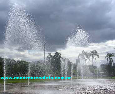 Parque Thays: Tarde tormentosa y los chorros de agua que parecen hilos de plata.
