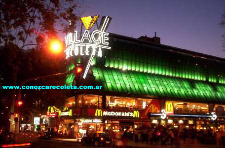 Complejo Village Recoleta: Vista nocturna del mismo, situado en Vicente López entre Junín y Uriburu. Allí hay varios restaurantes y salas de cine.